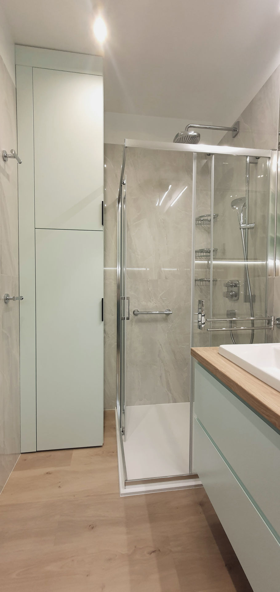 Łazienka w kolorach mięty, kabina prysznicowa, Płytki onyx
