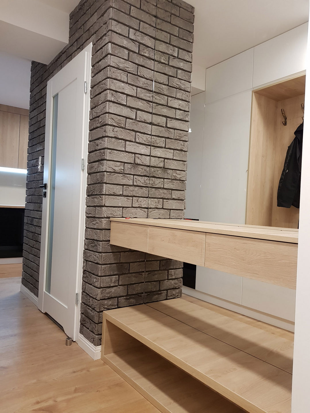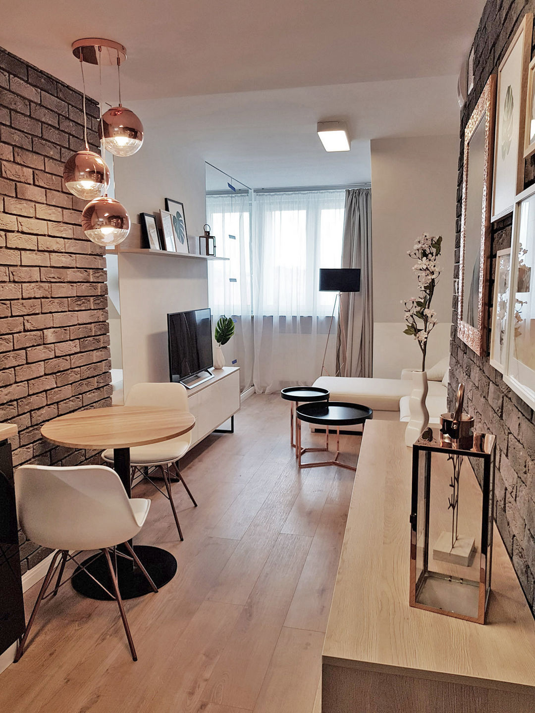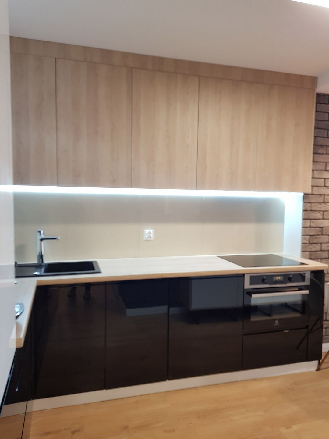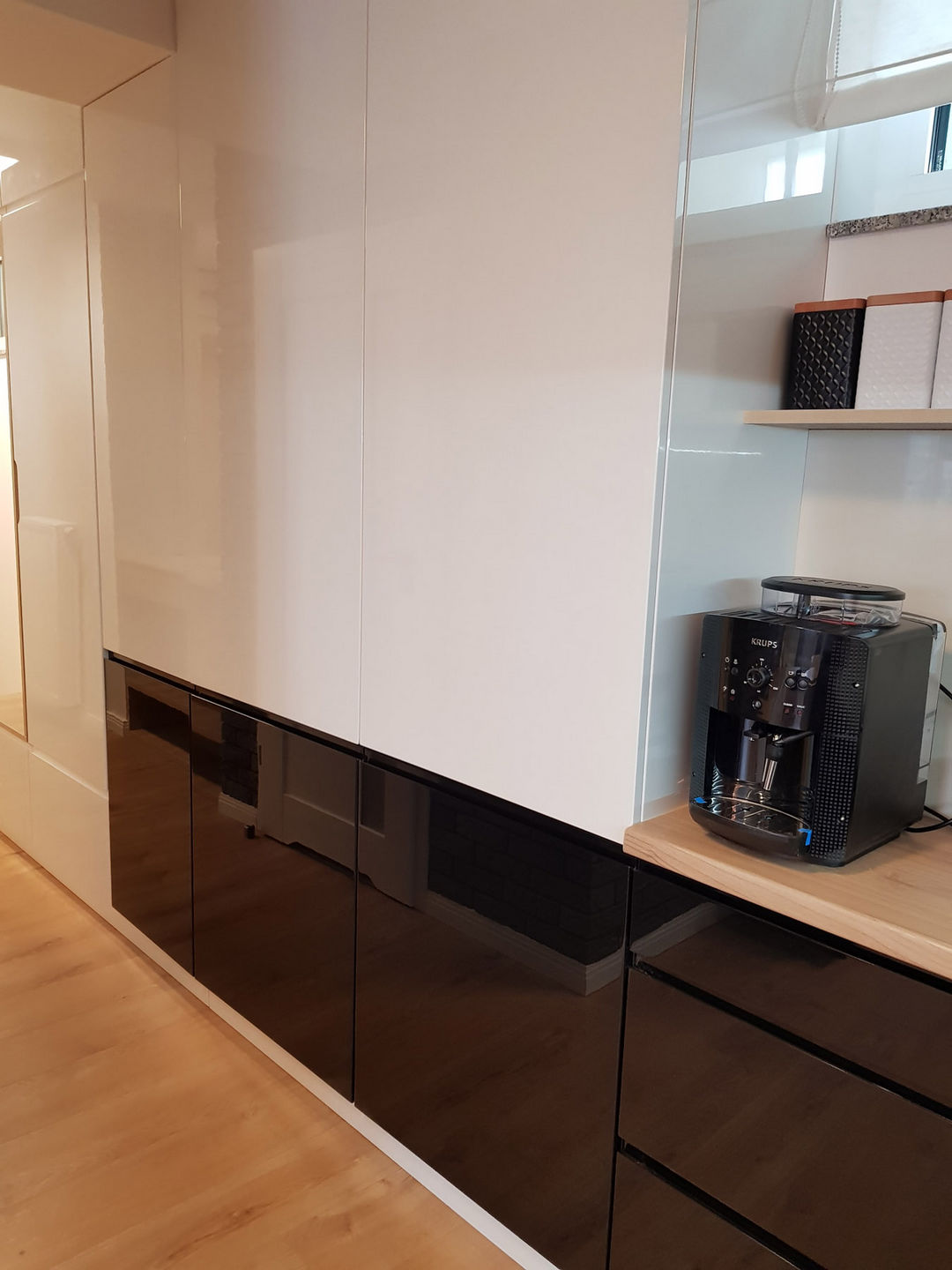 Całość została utrzymana w nowoczesnej stylistyce, gdzie dominuje czerń i biel oraz ciepło drewna.