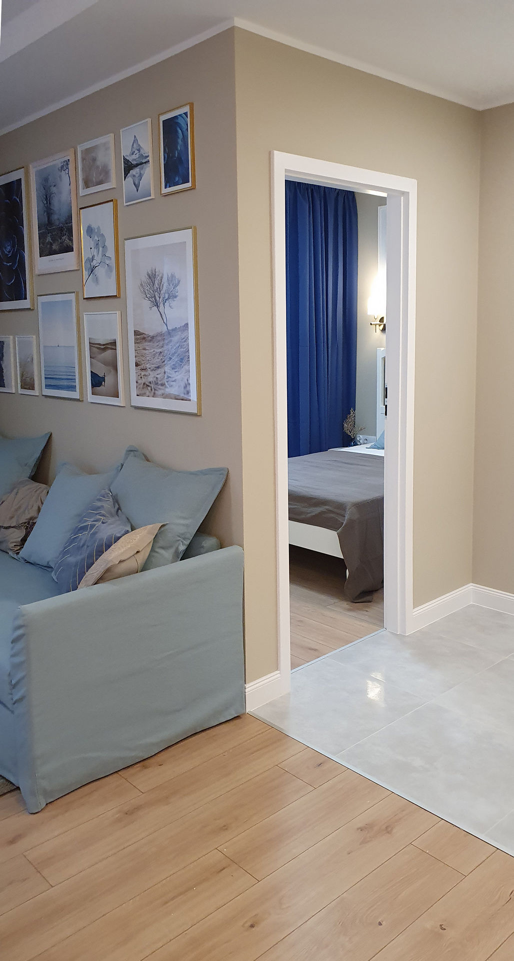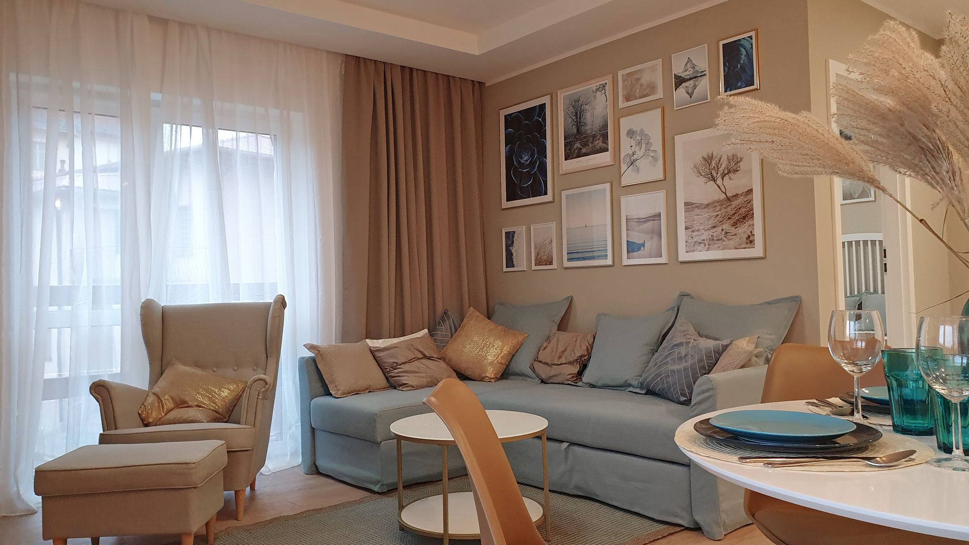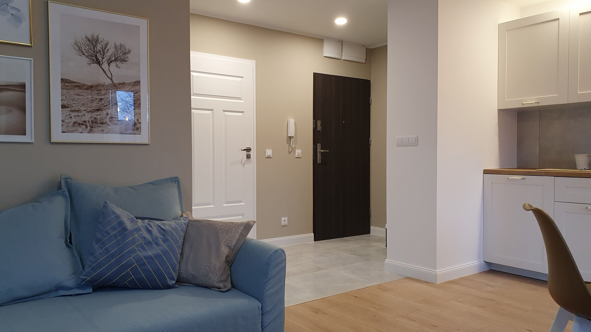 Kolejne mieszkanie wakacyjne - tym razem w Świeradowie Zdroju. W mieszkaniu tym zaplanowałam stylistkę klasyczną, nieco retro z dużą ilością bieli, beżu, jasnego drewna i błękitu. Mieszkanie zostało przeze mnie wyposażone w pełni. W jego skład wchodzi salon z aneksem kuchennym, jadalnią i częścią wypoczynkową oraz nieduża, ale funkcjonalna łazienka i mała sypialnia. Sypialnia jest na tyle wąska, że zmieściły się po obu stronach łóżka tylko dwa małe stoliki, za to z marmurowymi blatami. Mieszkanie zostało urządzone w kategorii niskobudżetowej.