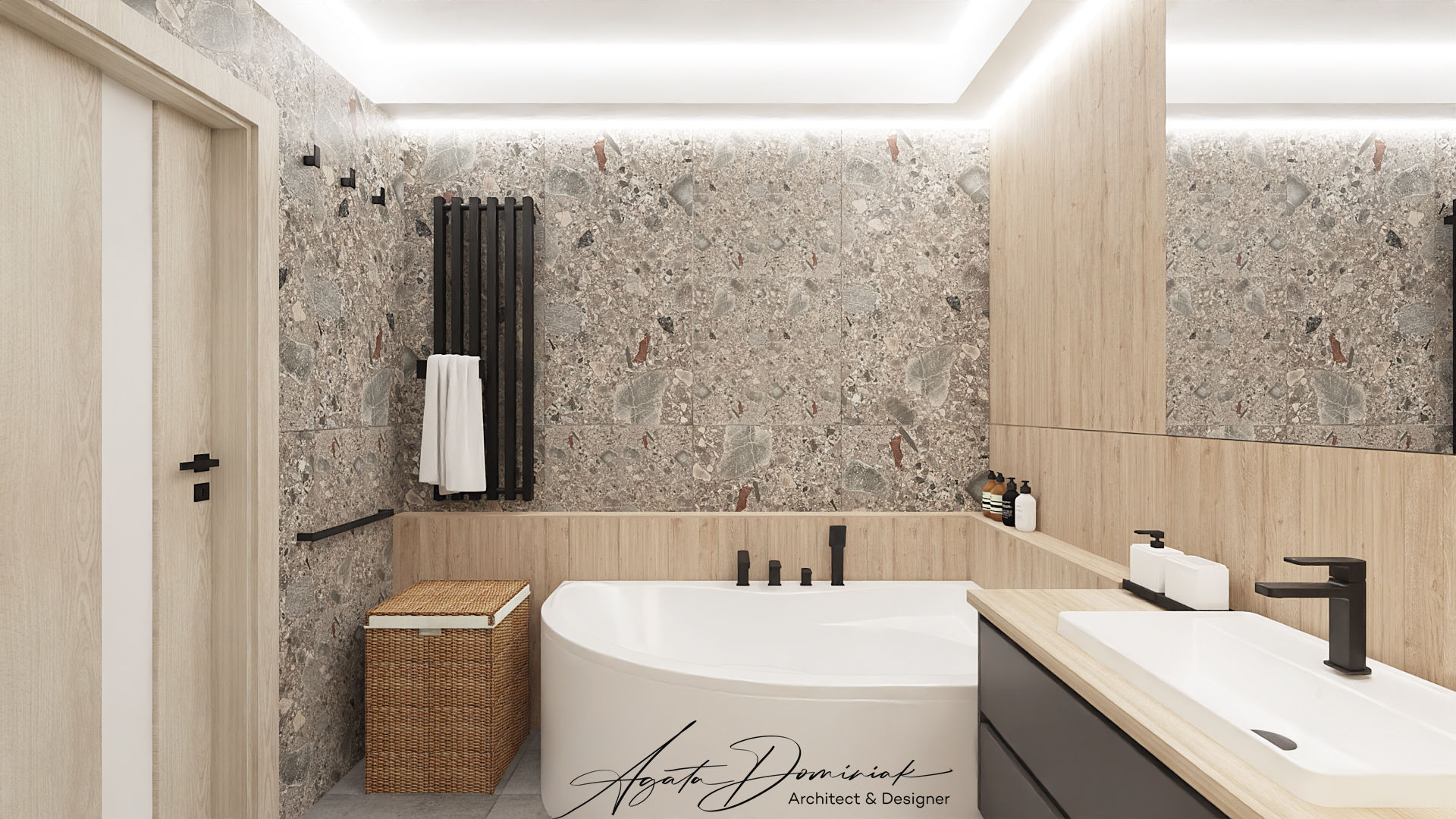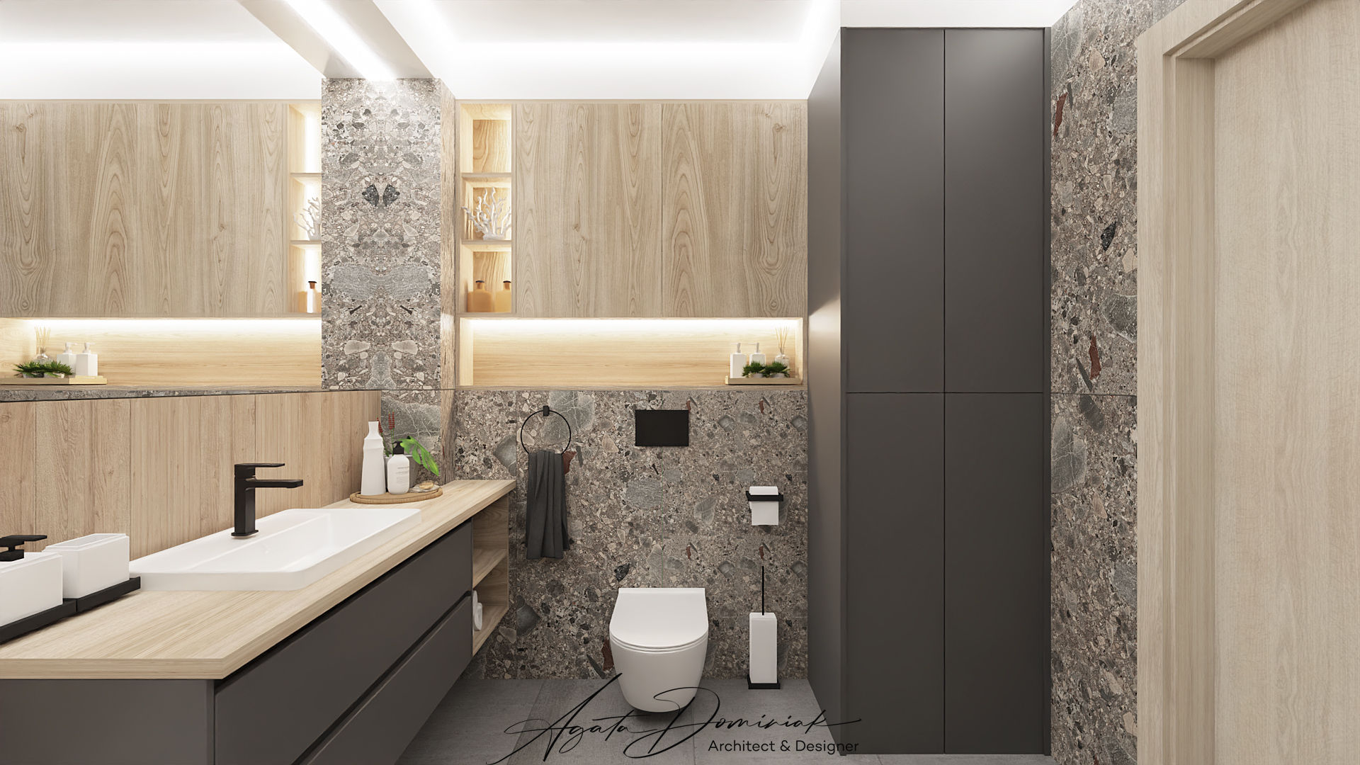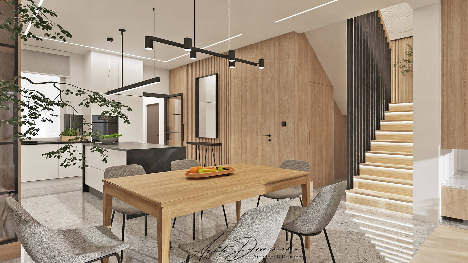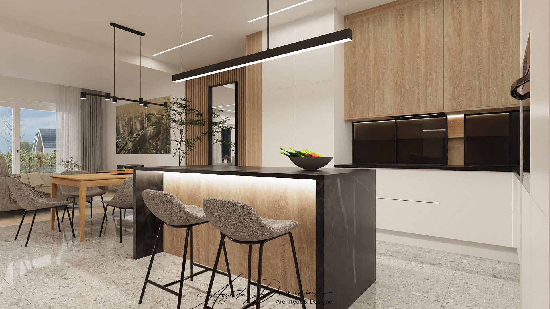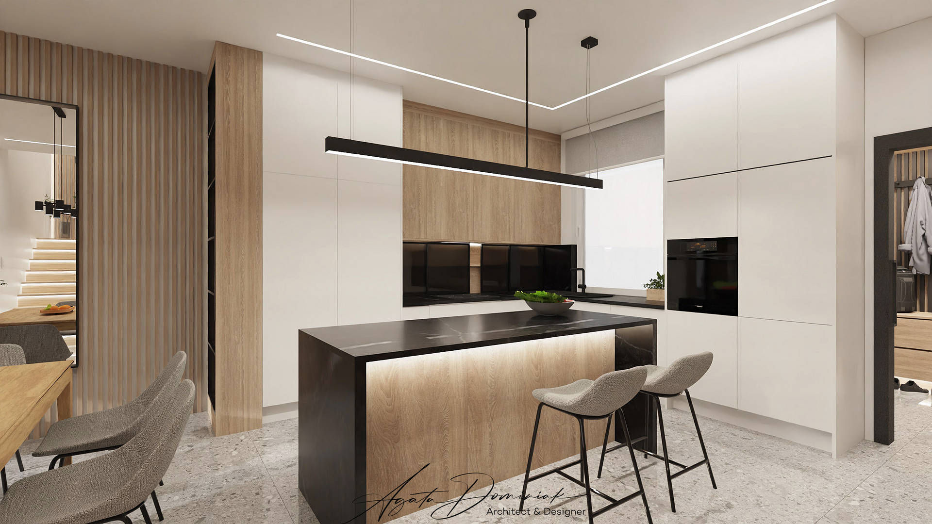- Dom prywatnydrewno we wnętrzugranitowa posadzkakuchnia z wyspąStyl japandiStyl nowoczesny