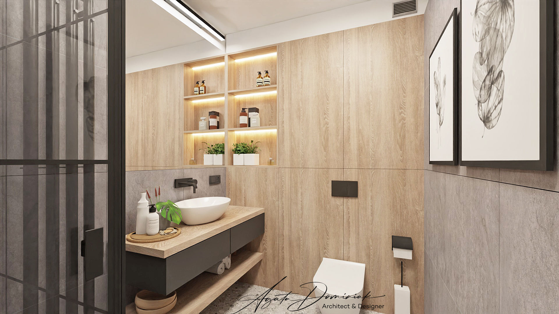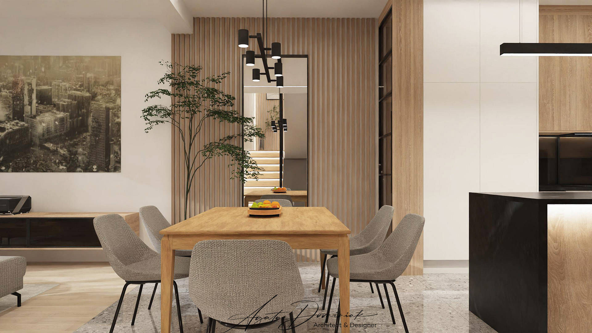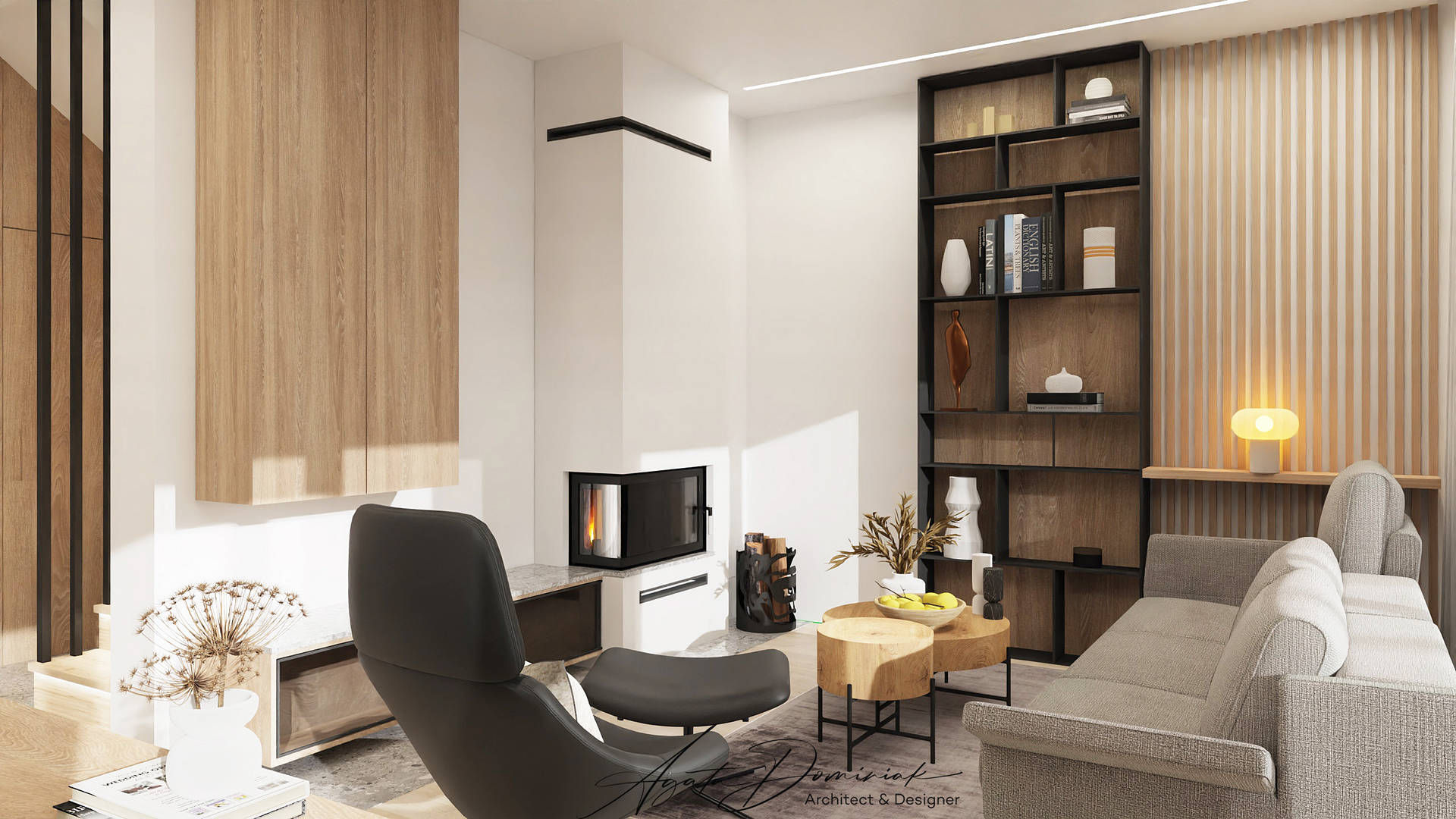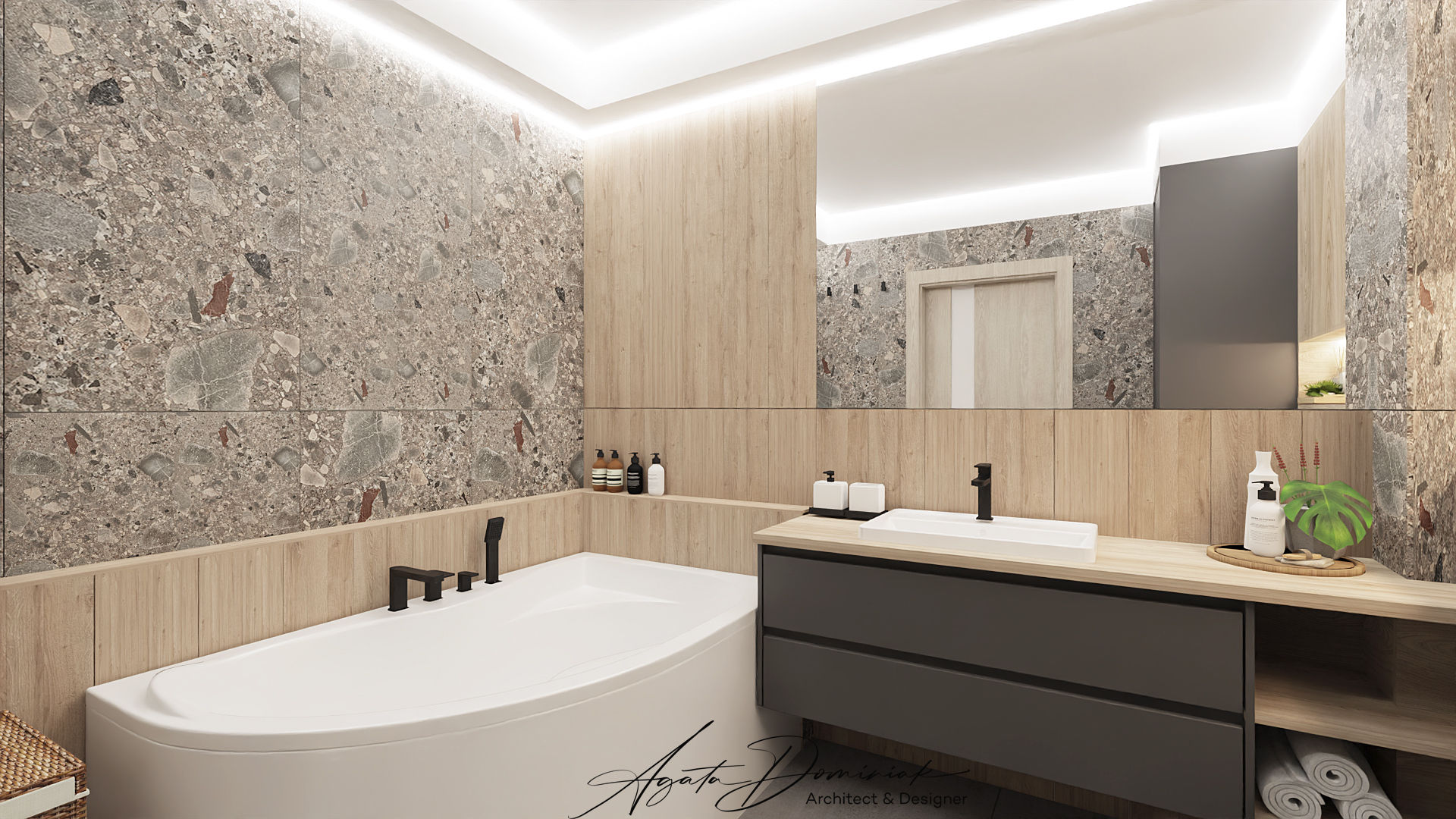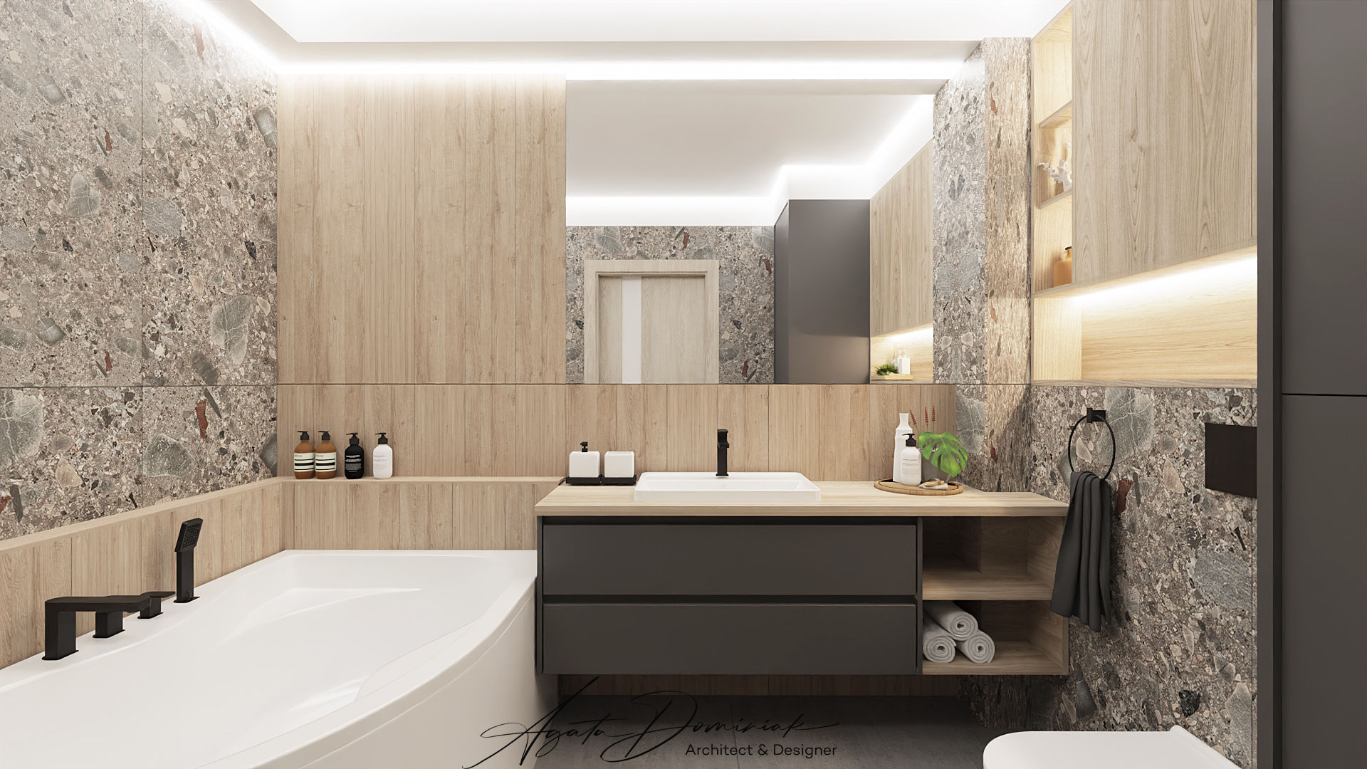 - Dom prywatnydrewno we wnętrzugranitowa posadzkakuchnia z wyspąStyl japandiStyl nowoczesny